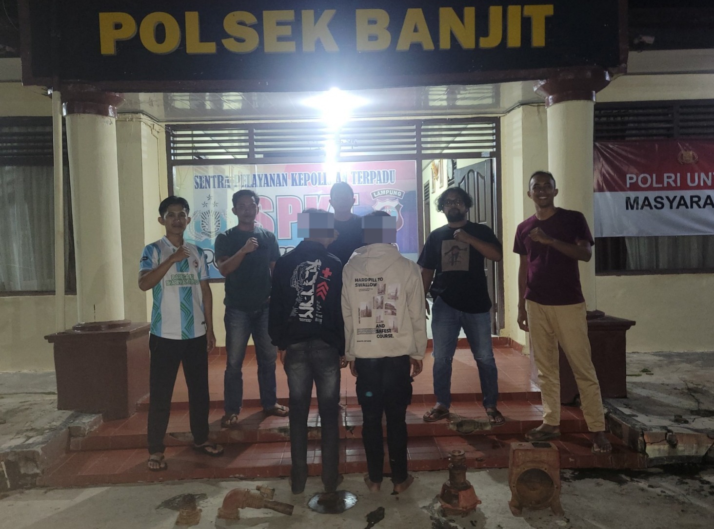 Selanjutnya terduga pelaku dan ABH beserta barang bukti 1 (satu) unit alat sedot air merk NS – 80 warna merah dibawa ke Polsek Banjit untuk dilakukan pemeriksaan lebih lanjut.