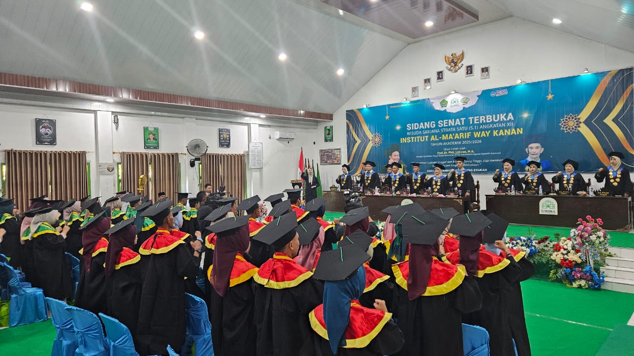 BARADATU,RADAR SEMESTA MEDIA.COM— Suasana haru dan bangga menyelimuti kampus Institut Al Maarif Way Kanan, Kamis (30 Oktober 2025), saat lembaga pendidikan tinggi Islam kebanggaan masyarakat Way Kanan itu menggelar Sidang Senat Terbuka ke-12 dalam rangka Wisuda Sarjana Angkatan ke-12.