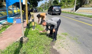 Pantauan di lokasi tampak AKP Mustholih di sela-sela kegiatan personel Sat Intelkam bersama-sama membersihkan area sekitar Halte mulai dari sampah plastik, dedaunan, hingga saluran air di sekitar.RSM/RLS